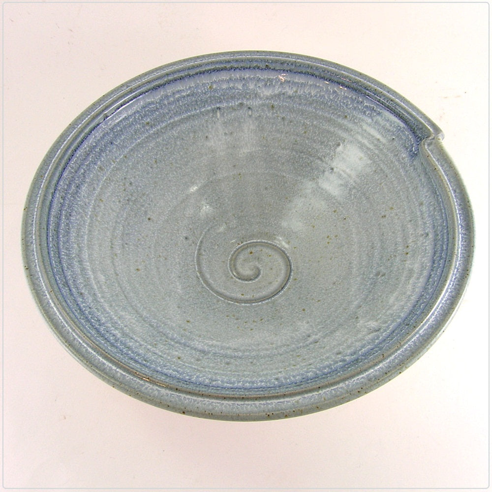 This beautiful and stylish serving bowl measures 12x4 inches. It is microwave and dishwasher safe. Micheal has used his popular blue and white glaze on this bowl.